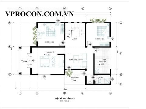 Bố trí công năng tầng 2 nhà phố 2 tầng mái thái diện tích 120m2