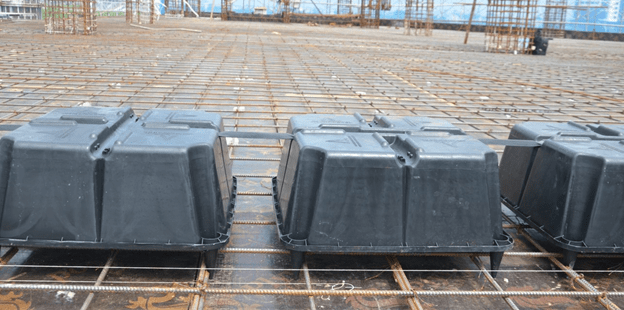 Là phương án sử dụng những hộp nhựa coppha tạo hệ sàn rỗng , với độ rỗng ở trong , phần mặt dưới phẳng không dầm, tạo nên các tấm sàn phẳng vượt nhịp lớn , không lãng phí chất liệu và nâng cao độ sắc nét cho công trình kiến trúc.